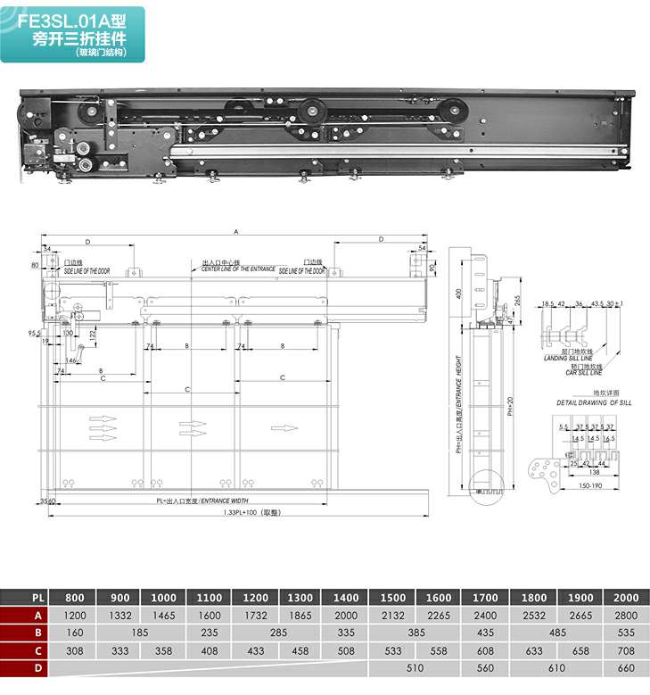 FE3SL.01A型旁开三折层门装置(玻璃门结构)
